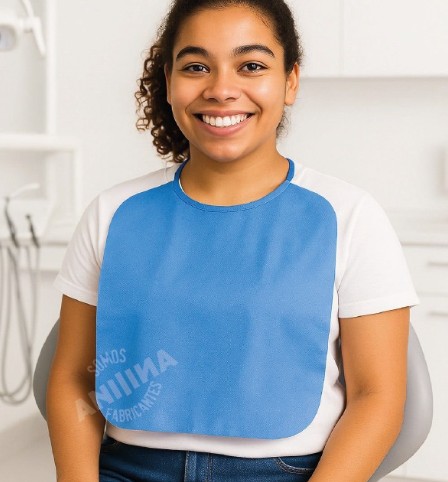 Baberos desechables azules, prácticos e higiénicos, diseñados para proteger ropa y piel durante procedimientos médicos, estéticos o de alimentación. Fabricados en material resistente y ligero, ofrecen comodidad y facilidad de uso.